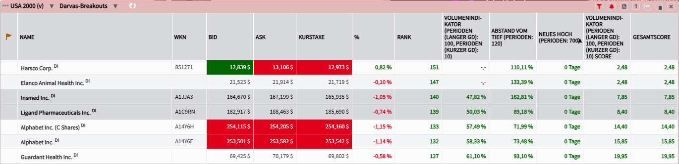 Tipp: Mit dem mächtigen Aktienscreener https://rankings.traderfox.com kannst Du selbst Darvas-Aktien finden und die Suchkriterien beliebig anpassen. Schau Dir die Software einfach einmal an und probiere Dich aus.